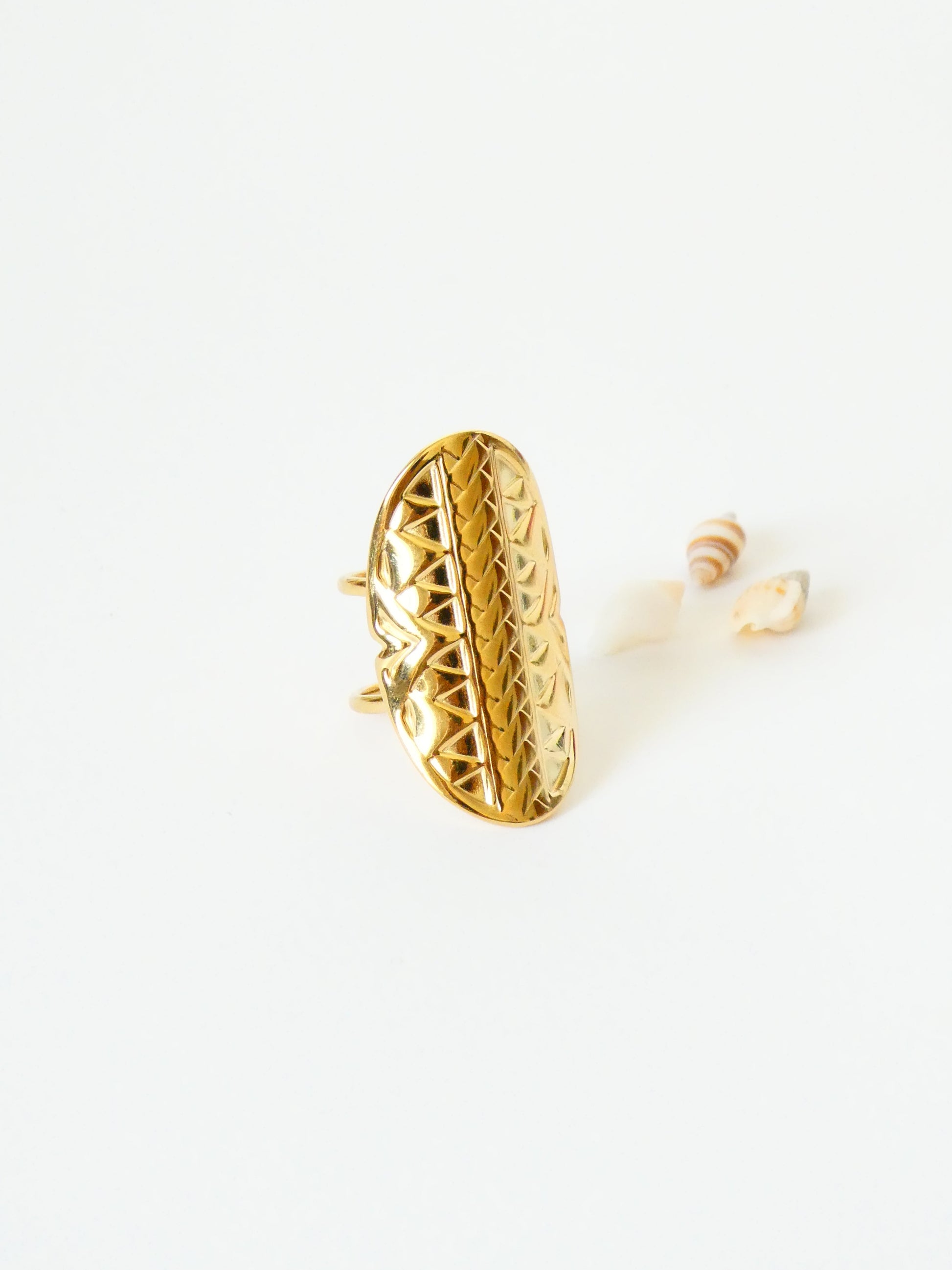 La bague Olympa est en acier inoxydable, réglable et élégante.