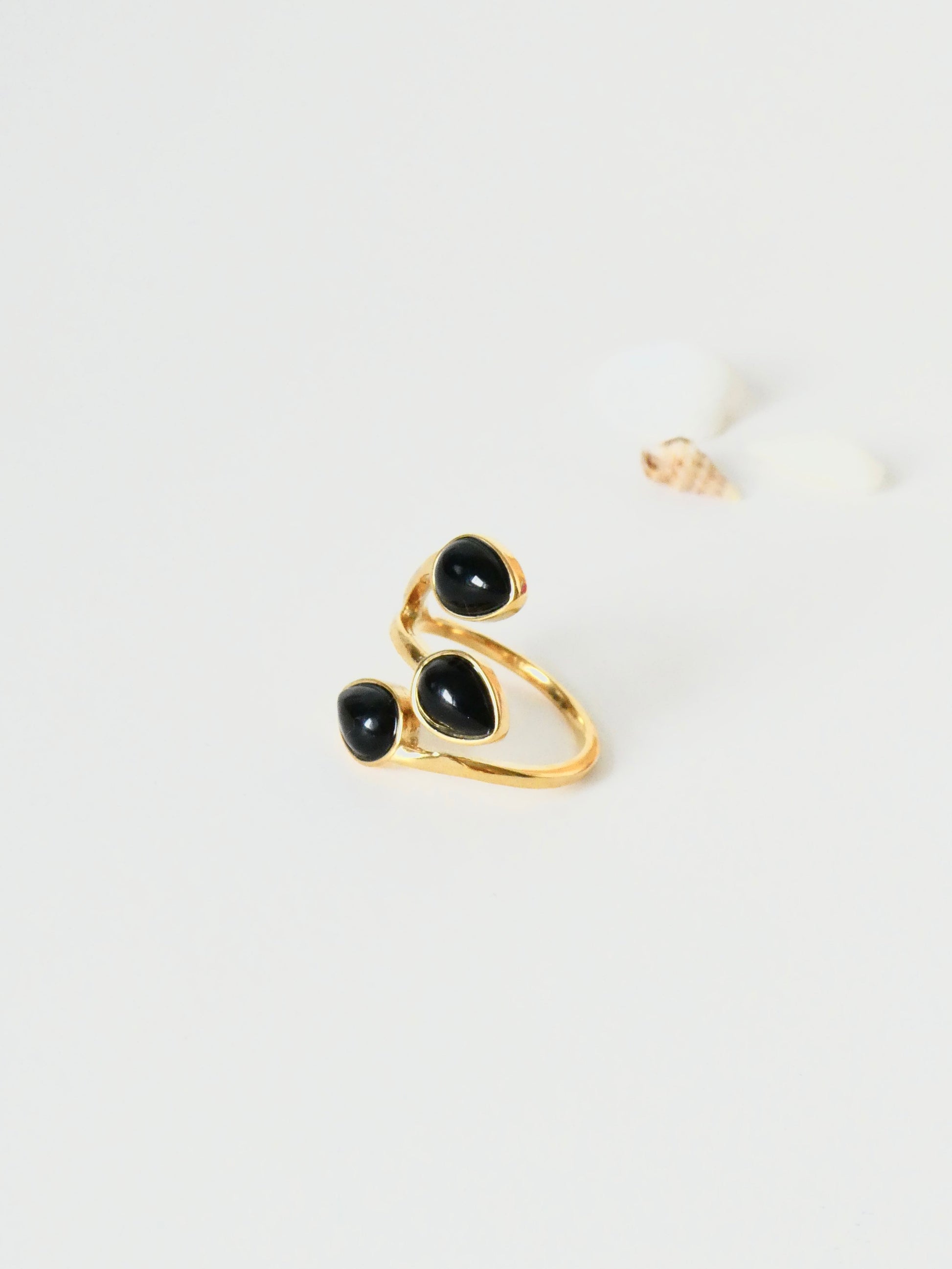Bague élégante à trois pierres, pensée pour épouser naturellement votre main, en acier inoxydable.