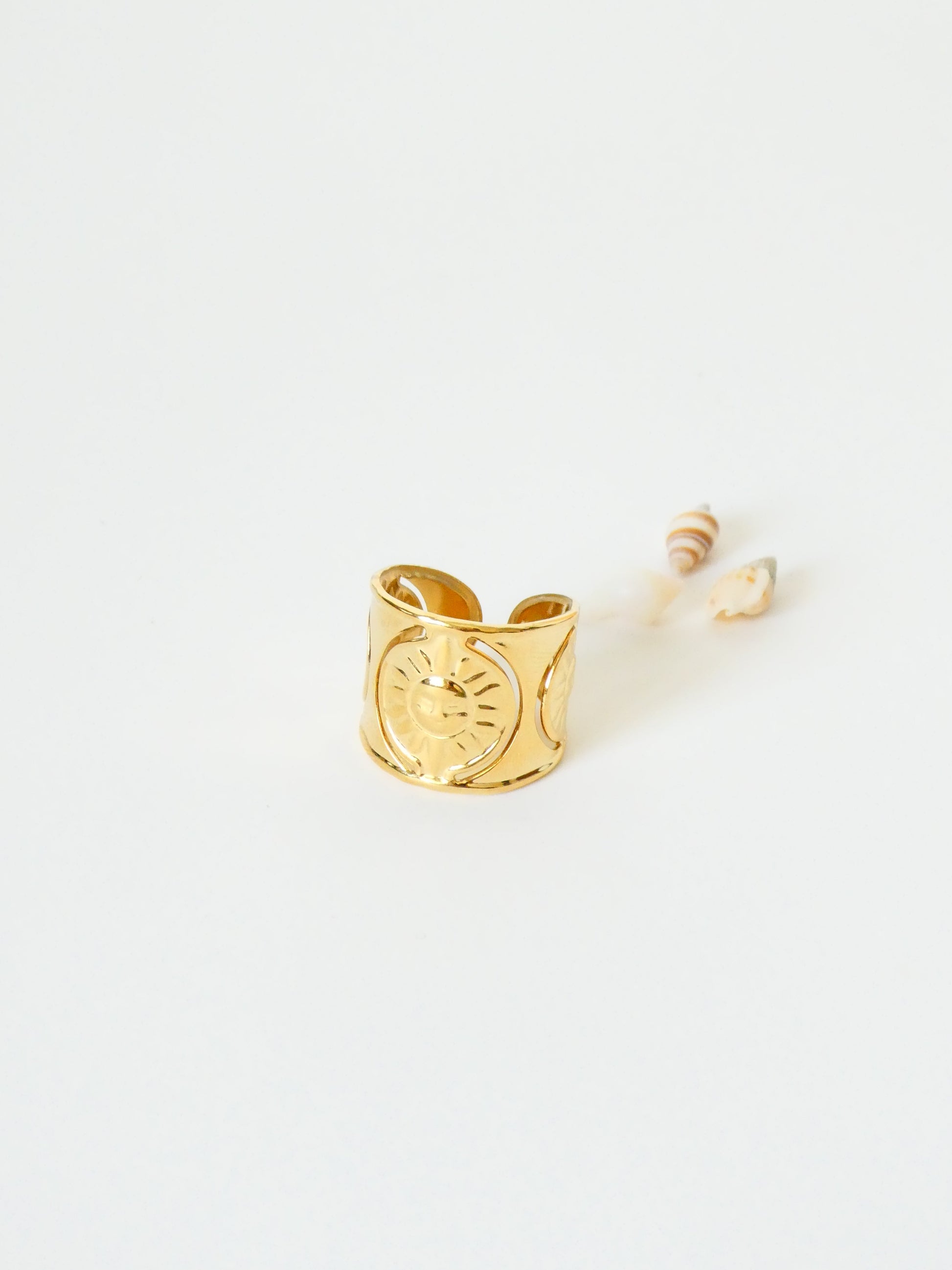 La bague trois soleils est facilement réglable à toutes les tailles de doigts.