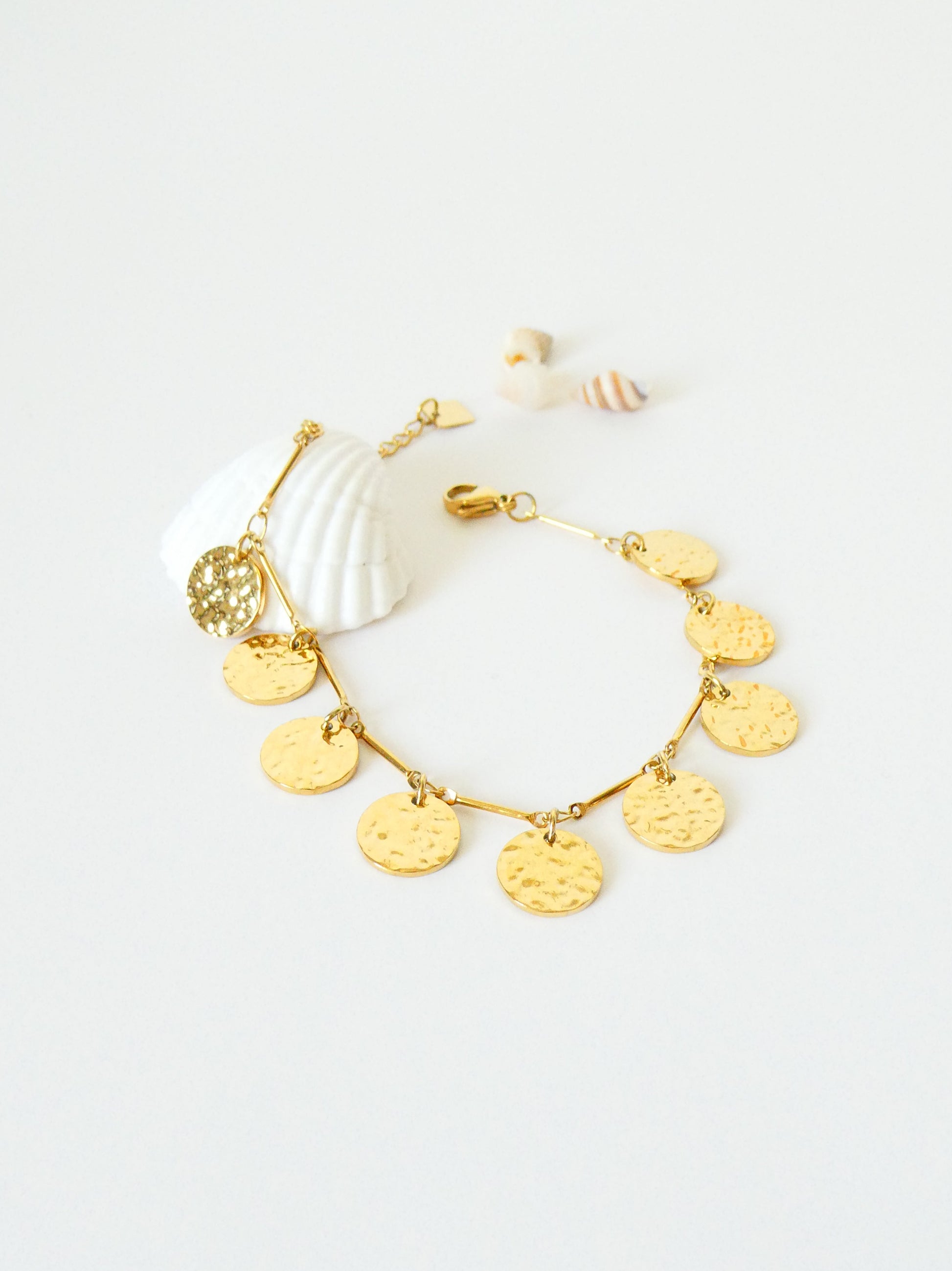 Après un contact régulier avec l'eau, nous vous conseillons simplement de les essuyer délicatement avec un chiffon doux. Cela permet de préserver leur brillance et leur doré plus longtemps ✨